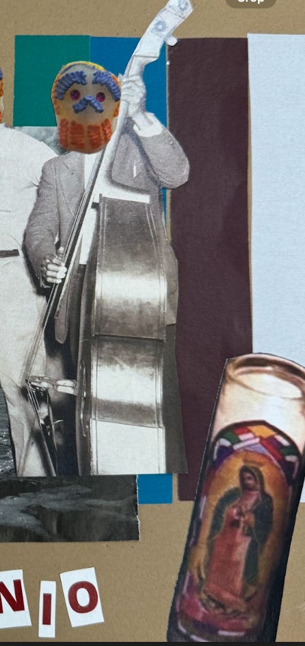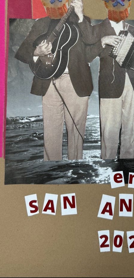 I started the poster — a collage using an old photo of my bisabuelo and his conjunto band — but, beyond laying out its various elements, I never got around to actually putting it together. The materials sat atop my desk for days, mocking my attempt at spontaneously creating for the fun of it. And then we left to New Orleans for 1 week.